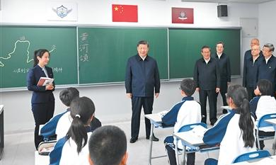 北京市援建的北京四中雄安校区2023年8月投入使用,现有学生380多人。教学楼里,学生们正在上课。习近平走进初一(2)班教室,同师生交谈,了解教学情况。他希望把北京四中办学的好经验好做法带过来,用心用情呵护孩子们身心健康,促进孩子们全面发展。