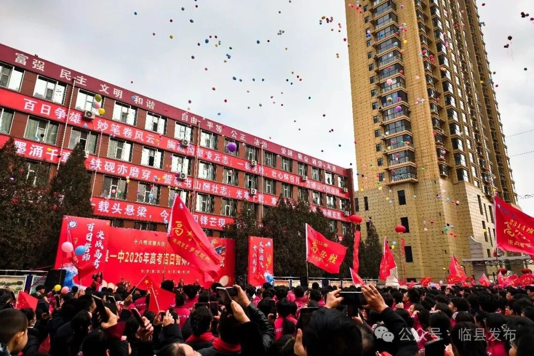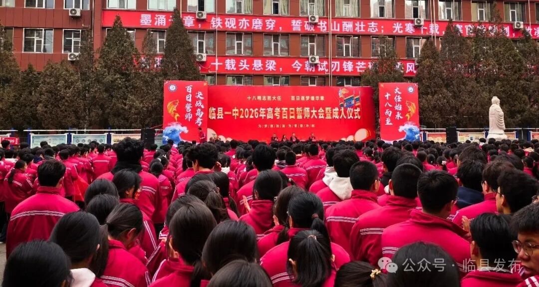 为激发高三学子备考斗志,营造昂扬奋进、团结向上的备考氛围,2月27日上午,临县一中在行知楼前隆重举行2026年高考百日誓师大会暨成人仪式。全校高三师生齐聚一堂,共同见证青春成长与出征誓言。县政协副主席、临县一中副校长冯立新出席仪式。
