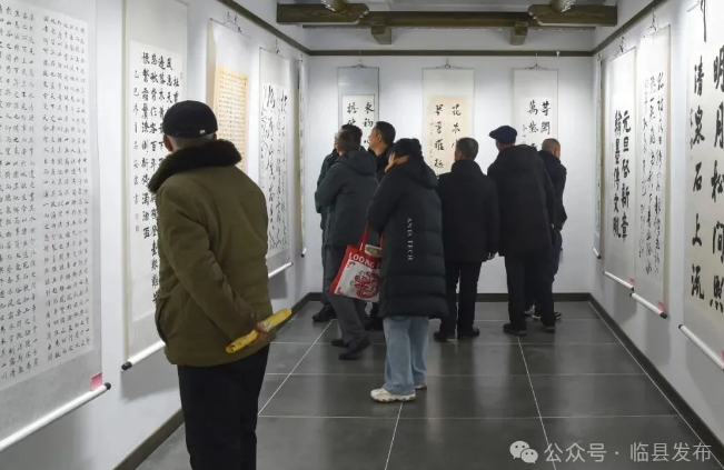 在展览现场,群众在作品前驻足停留,一同欣赏书法作品,发出阵阵赞叹声。在浓厚的文化氛围中,感受着书法艺术带来的独特魅力。这场墨香之约,不仅为群众增添了一份“书香满庭芳”的节日喜悦,更凝聚起加快建设美丽幸福临县的奋进合力。