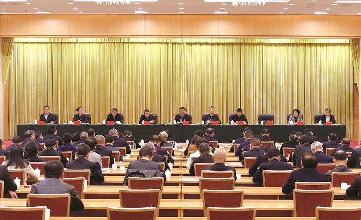 图为市委理论学习中心组深入贯彻中央八项规定精神学习教育读书班开班式会场。 记者 王益炜 摄