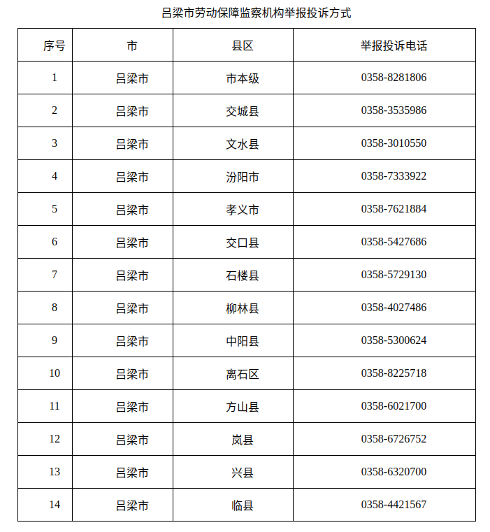 吕梁市拖欠农民工工资举报投诉电话