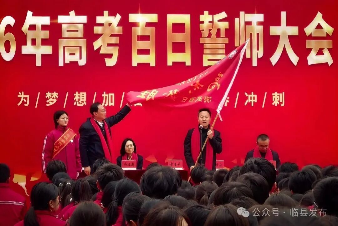 为激发高三学子备考斗志,营造昂扬奋进、团结向上的备考氛围,2月27日上午,临县一中在行知楼前隆重举行2026年高考百日誓师大会暨成人仪式。全校高三师生齐聚一堂,共同见证青春成长与出征誓言。县政协副主席、临县一中副校长冯立新出席仪式。