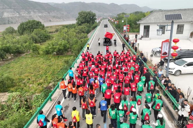 沿着黄河看临县,千名干部健步走。本次活动以响应全民健身国家战略为核心,通过组织千名机关干部健步走,推动全民健身理念深入机关单位,辐射社会层面,助力构建全民健身工作格局。同时,兼顾文旅融合与乡村振兴,以健身场景带动消费,为乡村振兴注入动能,实现“健步添活力、文旅引客流、振兴富乡村”的多元协同效果。主要活动包括千名机关党员干部健步走、乡村旅游示范村精品旅游线路发布推介、碛口古镇非物质文化展演、以旅促农土特产展销、临县大唢呐表演、临县民俗文化展演、碛口景区农民丰收季“李家山”晒金秋、碛口镇高家塔美食展和老干部文艺演出、临县黄河特色美食展示等内容。其中,健步走活动以碛口景区为核心,以黄河一号旅游公路为依托,曲峪镇前曲峪村为起点,沿黄河一号旅游公路到曲峪镇开阳村村委会广场为终点,全程4.3公里。让大家感受黄河文化,品鉴文旅新貌,激发奋斗热情,助力乡村振兴。