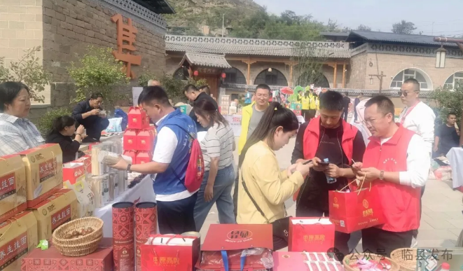 健步走活动根据沿途线路地形条件,分别设置打卡点,宣传介绍临县18个乡村旅游重点村和临县文创产品、土特产品、旅游景点、乡村振兴、产业发展等。邀请了18个村的支部书记、第一书记或村内形象代表参与每个村打卡点的宣传推介,还聘请知名网红全程跟进自媒体直播。与此同时,在碛口古镇,吕梁市电子商务协会在碛口古镇举办“庆丰收、品乡味,碛口古镇丰收季以旅促农——吕梁山土特产展销活动”。在碛口古镇中市街广场布置吕梁山土特产主展区、非遗工坊展区和特色体验综合展区,生动展示吕梁农耕文化、非遗技艺与碛口商驿文化的融合魅力。