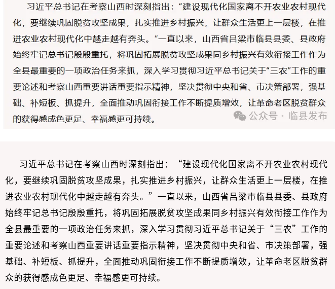 今年是5年过渡期的收官之年,做好全年各项工作意义重大、责任重大。我们将保持战时状态,以背水一战的决心、抓铁有痕的作风,抓紧抓实过渡期巩固拓展脱贫攻坚成果各项工作,努力交出一份衔接推进乡村振兴、加快建设农业强国的高质量临县答卷。