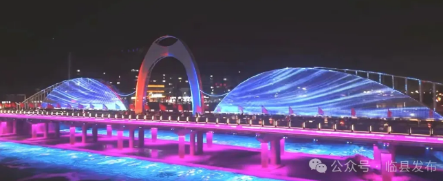 新建水门桥桥梁跨径129米、宽9.5米,并与全长132米的旧桥改造工程并行,将原桥升级为“人行道+非机动车道”专属通道。桥体设计独具匠心,融入了拓宽改造后的水门桥惊艳亮相最高达20米的天鹅造型钢拱与特色亮化系统,在显著提升区域通行效率的同时,也成为彰显城市风貌的新地标,群众休闲观光打卡的新去处。水门桥的拓宽改造,是临县经济社会发展中的一件大事、喜事,不仅是一项基础设施的升级,更是临县县委、县政府践行以人民为中心的发展思想、全力办好民生实事的具体行动。实施水门桥拓宽改造项目,是2025年全县重点推进的十件民生实事之一,也是县委、县政府积极回应群众关切、破解交通瓶颈的关键之举。项目自启动以来,始终坚持高标准规划、严要求管理、实举措推进。相关部门紧密协作、靠前服务,为工程顺利实施提供了坚实保障;临县胜利煤焦有限责任公司以高度的社会责任感,鼎力支持、回馈社会,充分展现了新时代企业的情怀与担当;全体参建单位和建设者们,发扬工匠精神、攻坚克难,确保了工程优质、安全、高效完成。这座崭新的大桥,凝聚着各方的心血与合力,是集体智慧的结晶,也是团结协作的硕果。