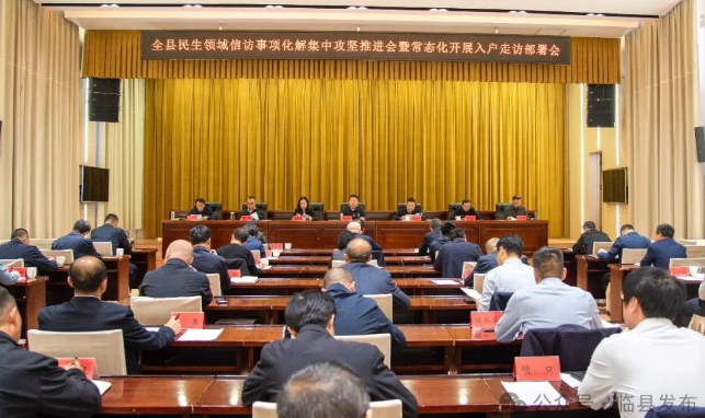 会上,县委常委、政法委书记、统战部部长赵小峰通报全县民生领域信访事项化解情况;县委常委、组织部部长郭永东解读《关于常态化开展入户走访、深化网格化治理的实施方案》并安排部署树立和践行正确政绩观学习教育相关事宜;县委常委、纪委书记、监委主任高鹏解读《临县2026年民生领域信访事项化解集中攻坚实施方案》;县直相关单位负责人、各乡镇党委书记参加会议。