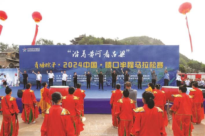 图为“沿着黄河看吕梁”青塘粽子·2024中国·碛口半程马拉松赛开幕式现场。 记者 王益炜 摄
