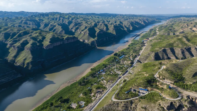 图为黄河石楼段,生态守护让母亲河尽显“清水绿岸”本色。