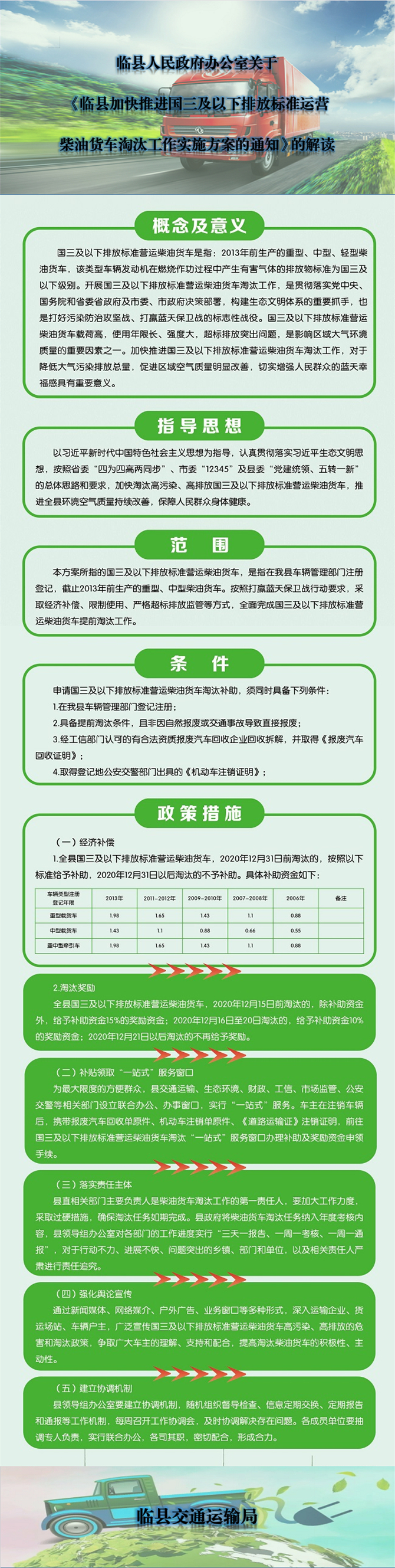 【图解】临县交通运输局关于《临县加快推进国三及以下排放标准运营柴油货车淘汰工作实施方案的通知》的解读