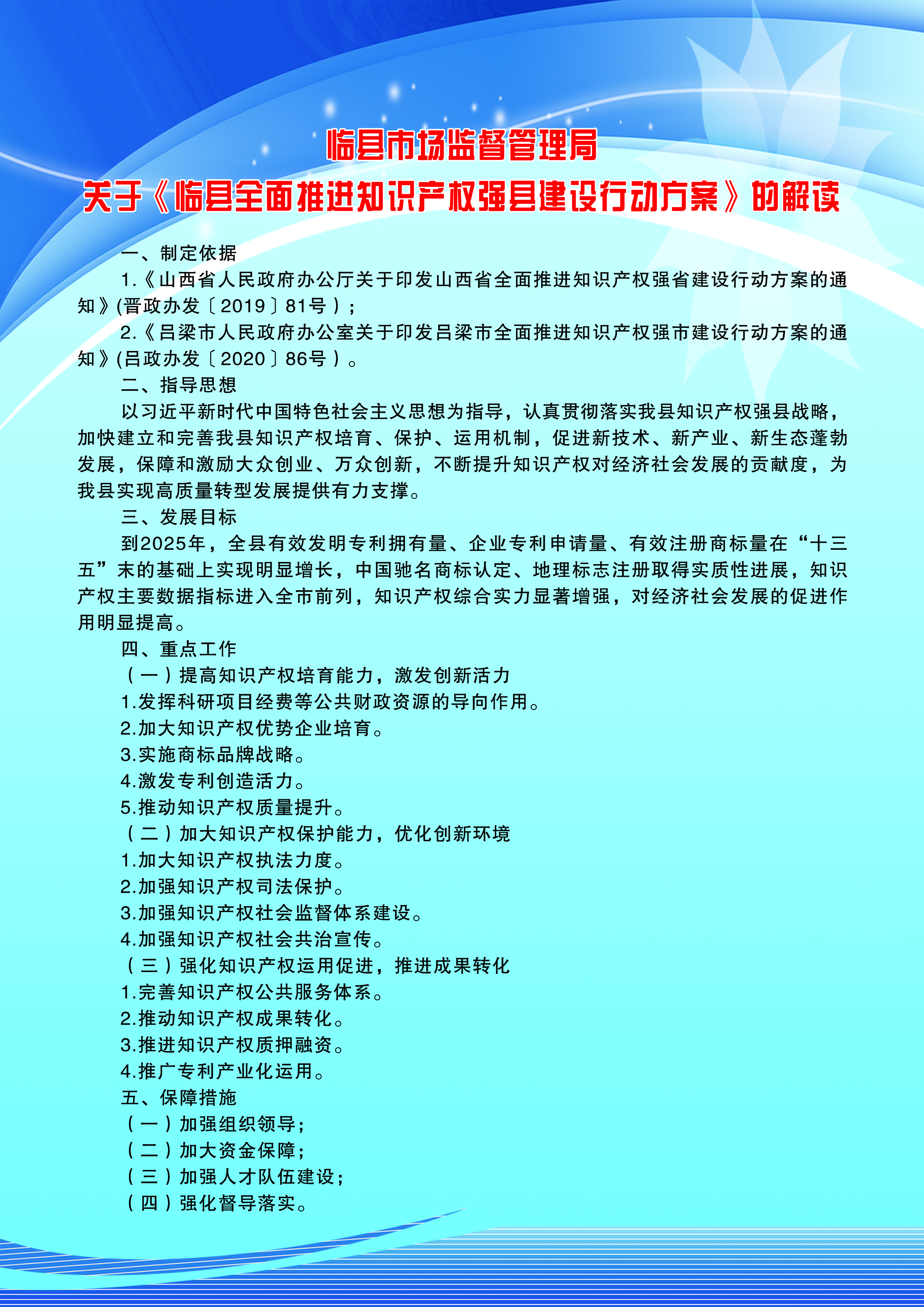 【图解】临县市场监督管理局关于《临县全面推进知识产权强县建设行动方案》的解读
