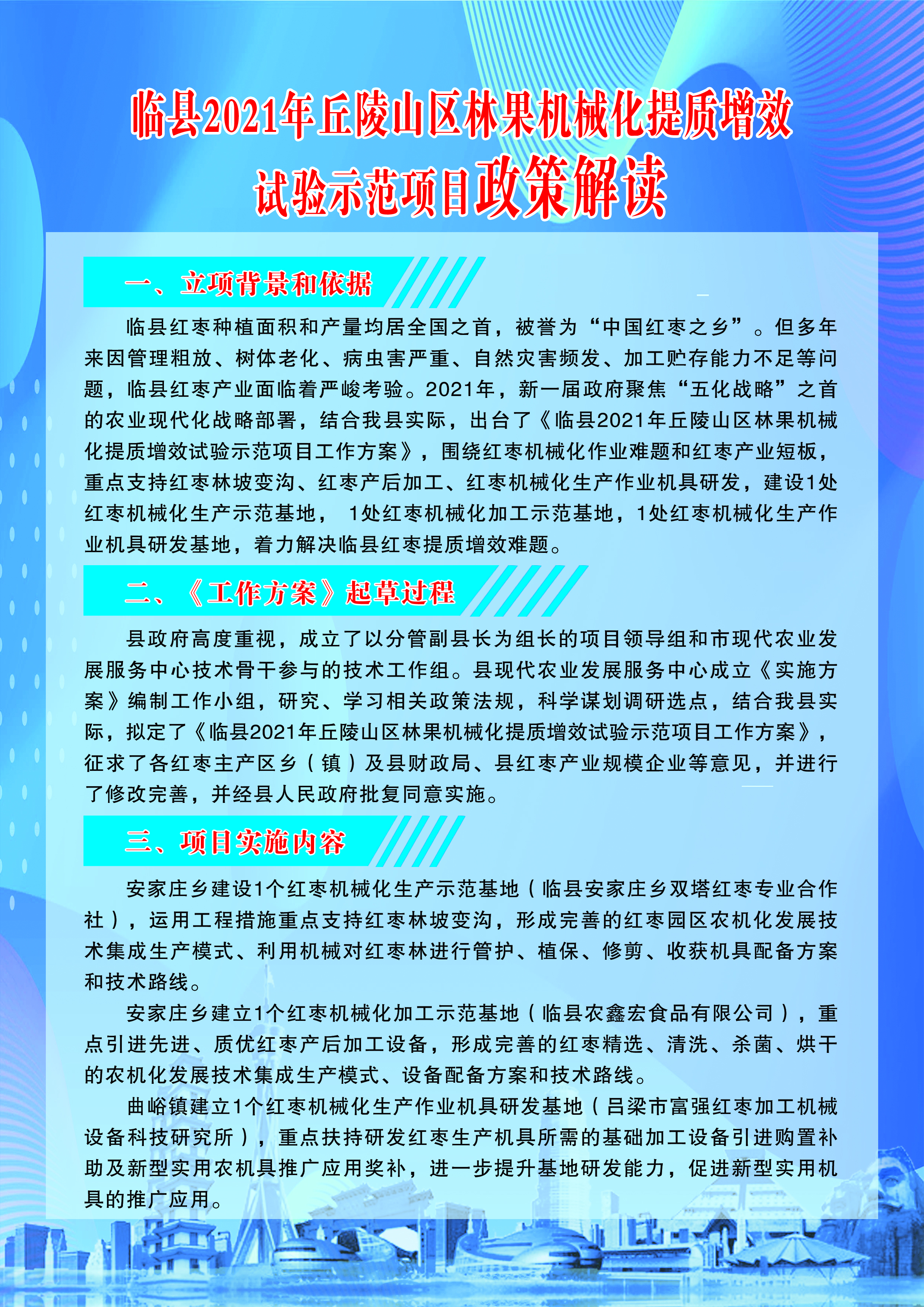 【图解】临县现代农业发展中心关于印发《临县2021年丘陵山区林果机械化 提质增效试验示范项目工作方案》的通知的解读