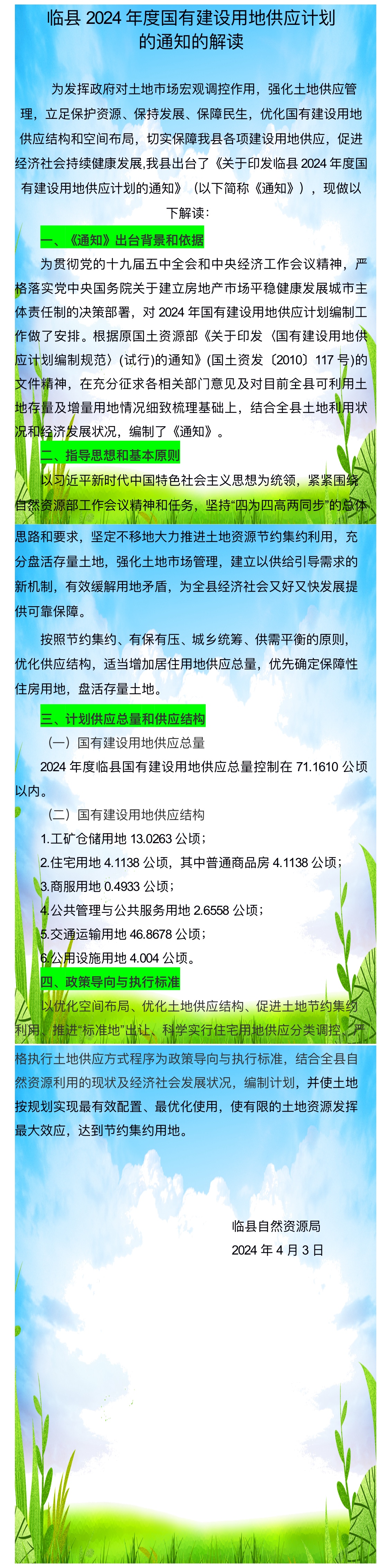 【图解】临县自然资源局关于印发《临县2024年度国有建设用地供应计划》的通知的解读