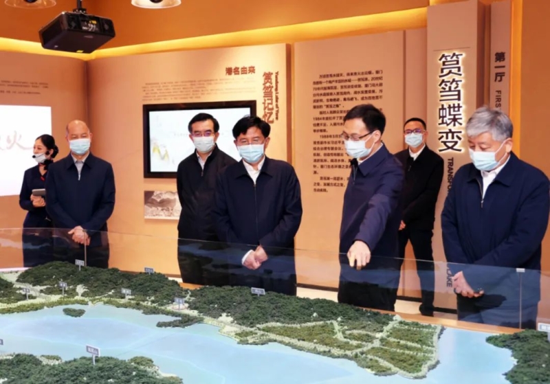 19日,孙金龙来到厦门筼筜故事馆,调研筼筜湖生态环境治理修复工作情况。习近平总书记在厦门工作期间提出“依法治湖、截污处理、清淤筑岸、搞活水体、美化环境”方针,经过长期生态环境治理,筼筜湖已从昔日的臭水湖变成如今的城市“绿肺”。孙金龙表示,要以习近平生态文明思想为指引,坚持精准治污、科学治污、依法治污,聚焦解决突出生态环境问题,持续加大环境治理和生态保护修复力度,以生态环境改善优化发展环境、增进民生福祉。