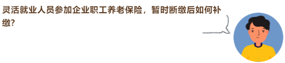 按现行政策规定,灵活就业人员为自愿参保。灵活就业人员中断缴费后可继续缴费,中断前后缴费年限累计计算,达到待遇领取条件时按月领取养老金。
