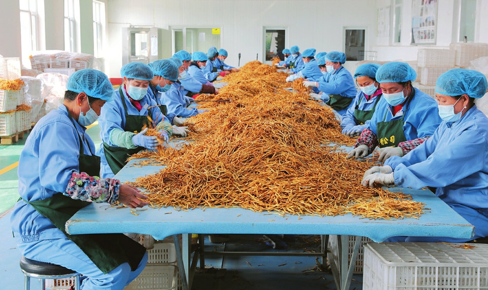 云州区三利公司的员工正在加工分拣优质干黄花。